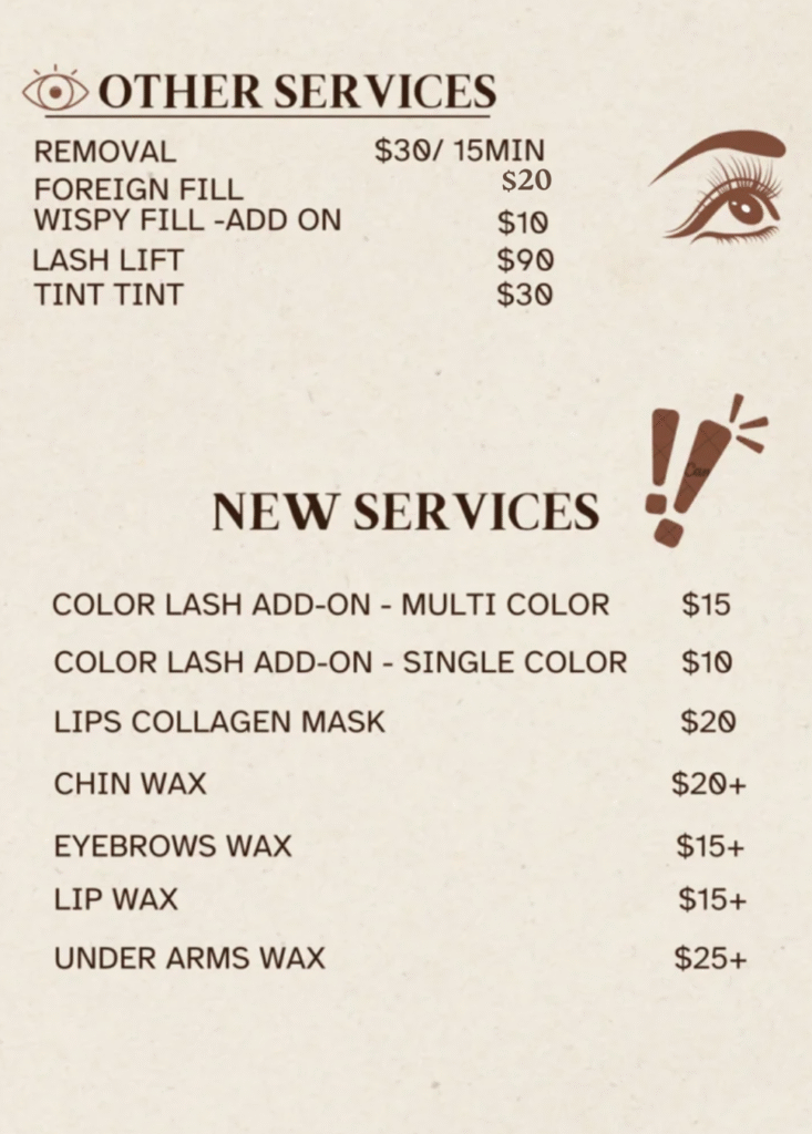 – Also, you must have 40% of lashes for fill appointment to be considered a fill. If not, you will be charged for a full set